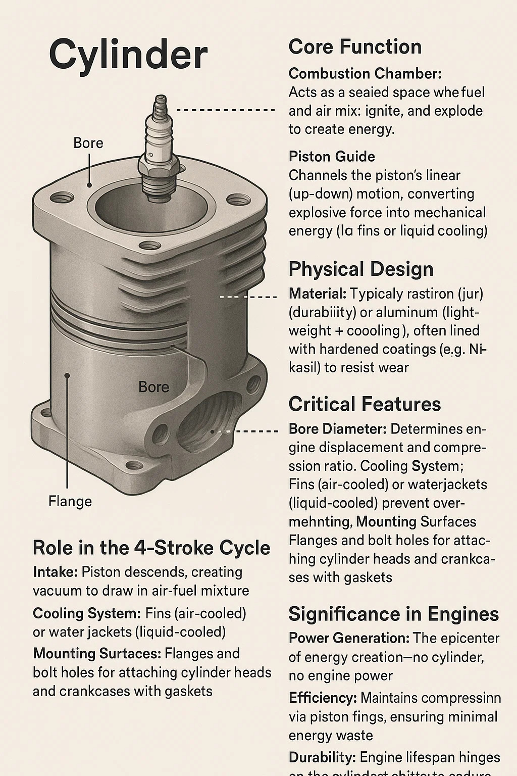 دليل المكبس: يوجه حركة المكبس الخطية (من أعلى إلى أسفل)، ويحول القوة الانفجارية إلى طاقة ميكانيكية.